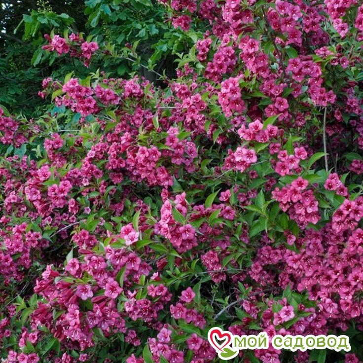 Вейгела цветущая «Румба» — Weigela florida ‘Rumba’  Это компактный полу карликовый кустарник, с округлой слегка распростертой короной, с изящными, наклонно-вертикальными побегами в высоту около 1-1,2 м., и в ширину достигает около1,2-1,5 м., Растет средней скоростью. Годовой прирост в высоту около 15-20см. в длину и ширину. Цветы колокольчатые, появляются в мае-июне в 3-4-цветковых соцветиях кистями на коротких боковых побегах. Бутоны обильны, насыщенного лилового до темного розового цвета. Цветки длиной до 2,5см. в диаметре, темно-розовые или розово- сиреневые, бледнее внутри, при отцветании темнеют. Немного выцветают на солнце. Цветет два раза в год – с мая по июль, продолжительно до 4-6 недель, иногда происходит спорадическое — повторное цветение с конца августа до конца сентября. Цветет на побегах прошлого года. На солнечных местах цветёт обильнее., но так же выносит лёгкую полутень. Не требовательна, предпочитает свежие, плодородные, супесчаные и суглинистые слабокислой и нейтральной реакции, слабо известковые, может расти как на тяжелых, так и на легких, равномерно-увлажненных, дренированных почвах. Не выносит засоления почвы, растет на карбонатных почвах.         К влаге: предпочитает равномерно-влажные, хорошо дренированные почвы. Переносит временное переувлажнение почвы, хуже временную засуху. Не переносит застойного переувлажнения-заболачивания. Морозостойкость: высокая, (оптимально до -23°С) (переносит морозы до (до -29°С). В условиях средней полосы России недостаточно зимостойка, но более выносливее других, более рослых сортов. Укрытая на зиму лапником все равно подмерзает, но быстро восстанавливается и к осени цветет, создавая компактный куст. С возрастом растения становятся более выносливыми, их зимостойкость повышается.